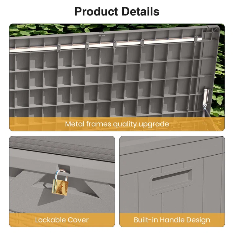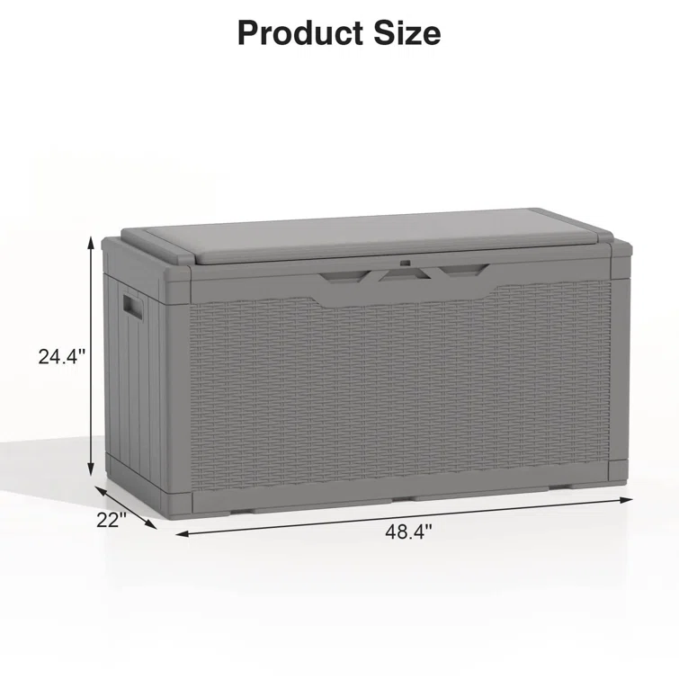 100 Gallons Water Resistant Resin Lockable Deck Box with Cushion