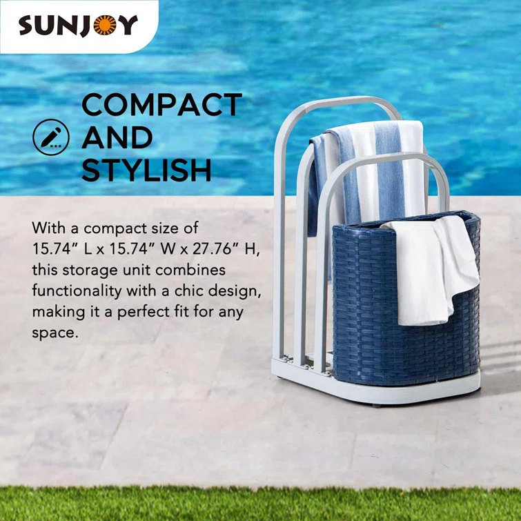 Sunjoy Rust-proof Aluminum Pool Float Storage Rack, 16 Inch Outdoor Wicker Poolside Float Organizer, Pool Float Caddy for Cushions, Floaties, Noodles, Pool Toys