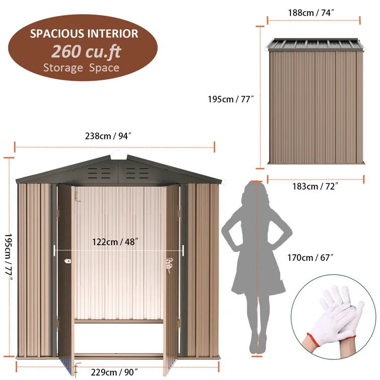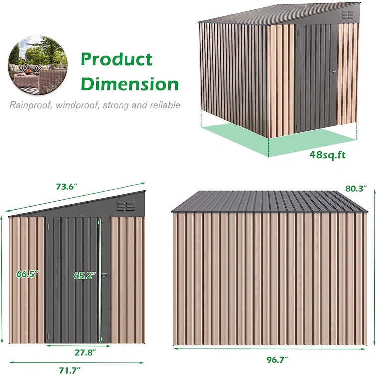 7.8 ft. W x 6 ft. DMetal Storage Shed