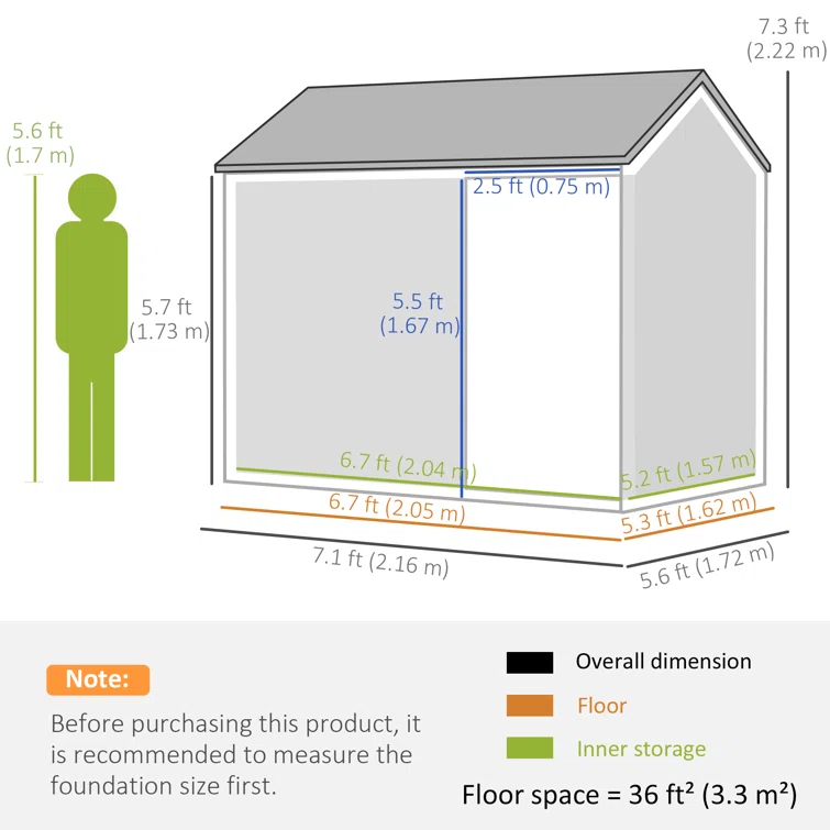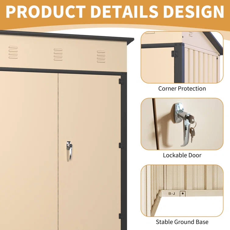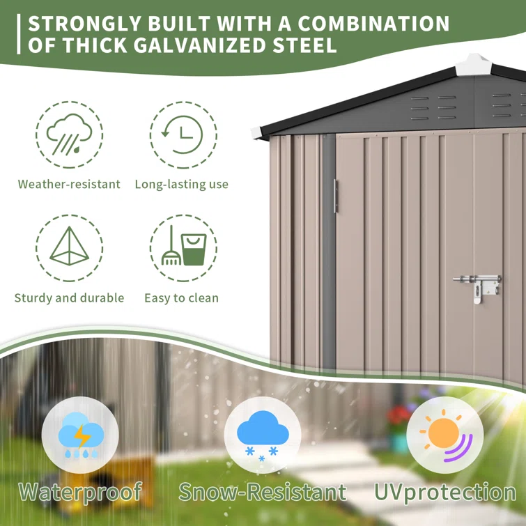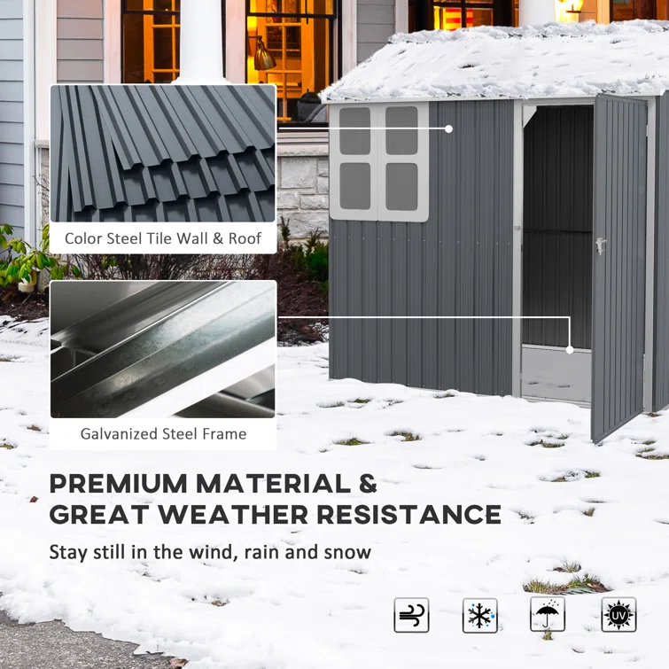 7 ft. 1 in. W x 5 ft. 8 in. D Metal Garage Shed