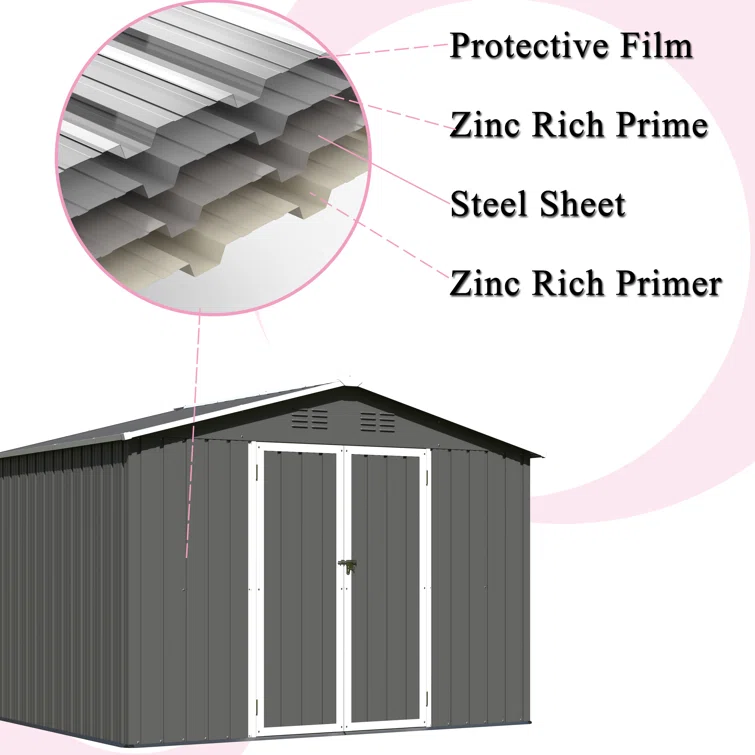 Alcazar 8 ft x 6 ft Metal Storage Shed