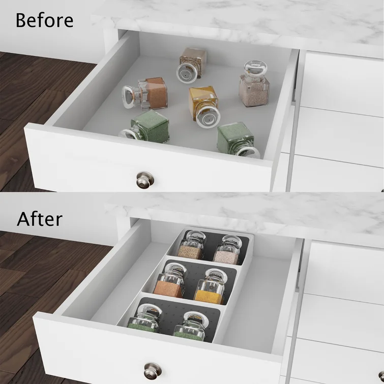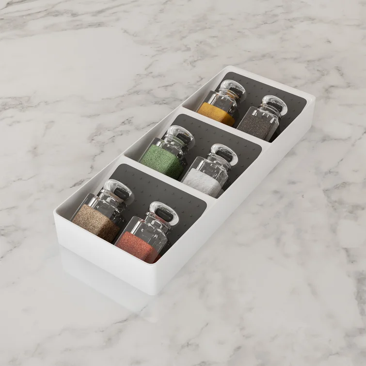 Onella Spice Drawer Organizer- 3-Tier Plastic Nonslip Space Saver Storage Rack with Angled Shelves for Kitchen, Pantry, Office or Bathroom