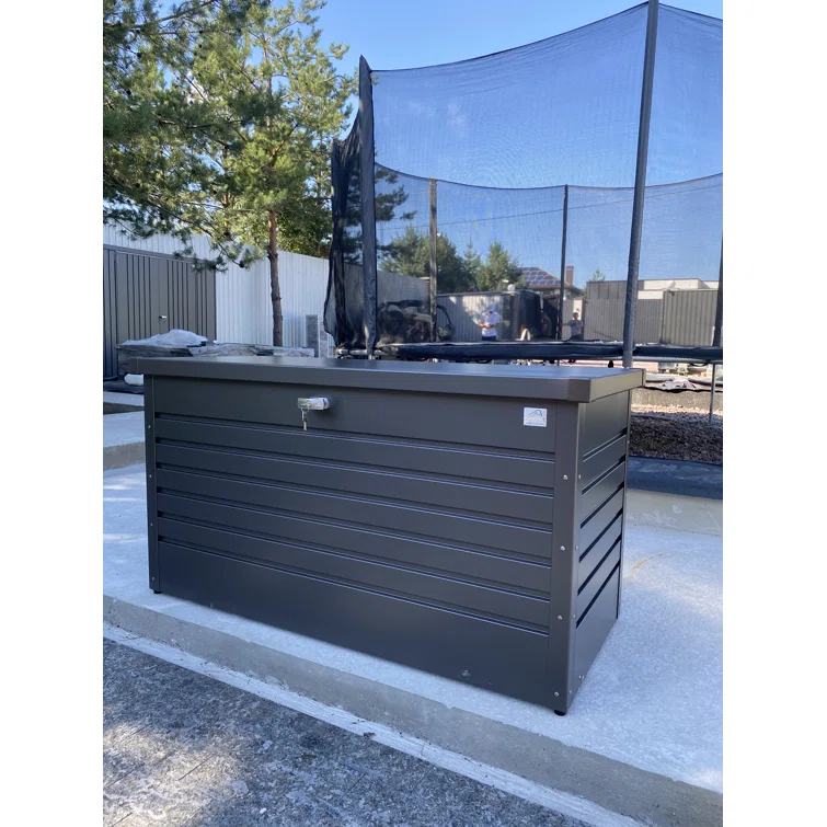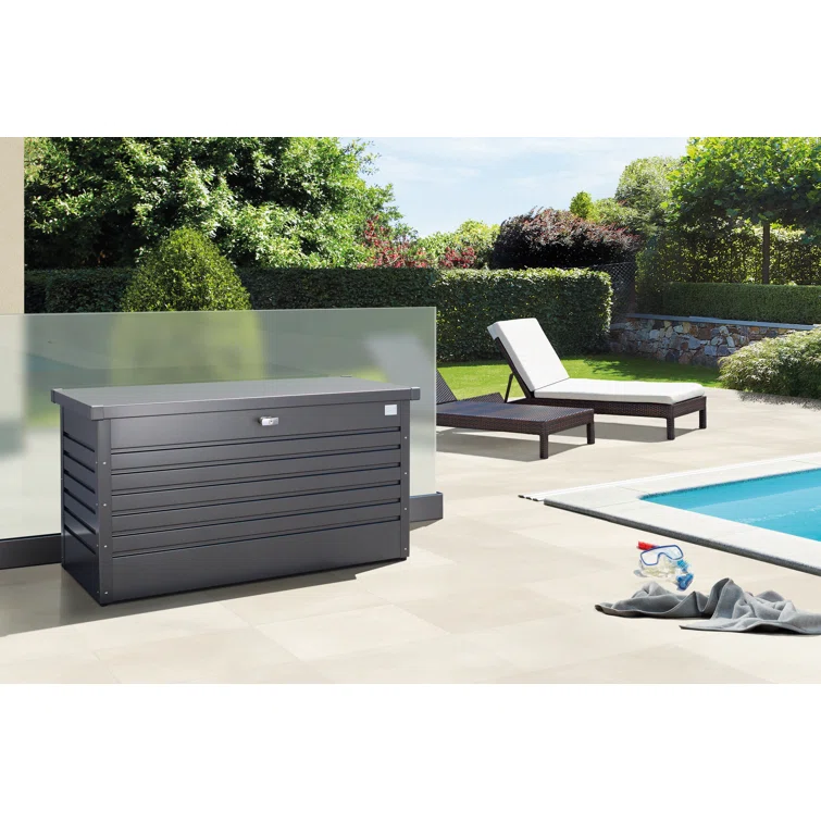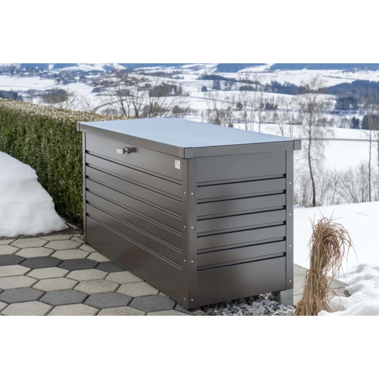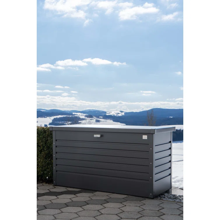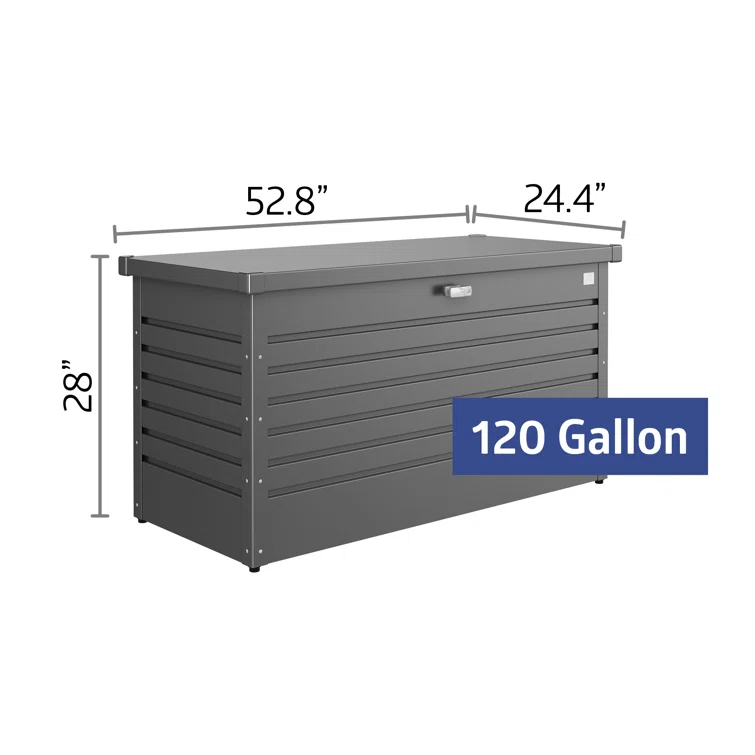 Biohort LeisureTime 120 Gallon Water Resistant Metal Deck Box with Lock in Dark Gray