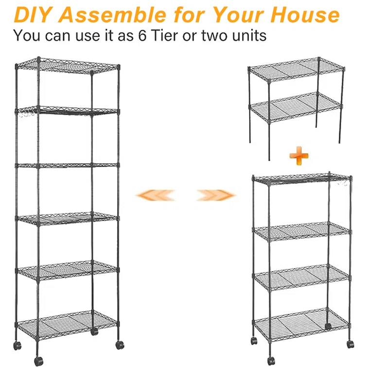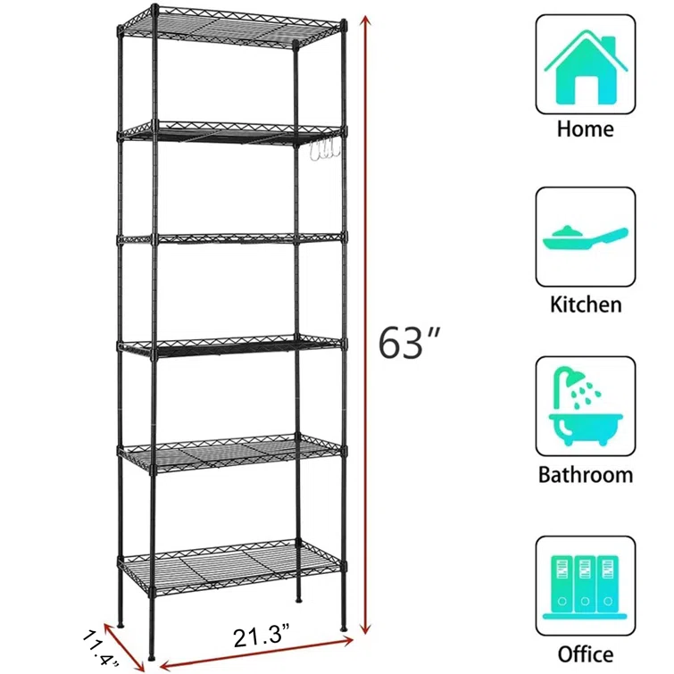 Martens 63" H x 20" W x 12" D Adjustable Shelving Unit with Wheels, Leveling Feet, Side Hooks