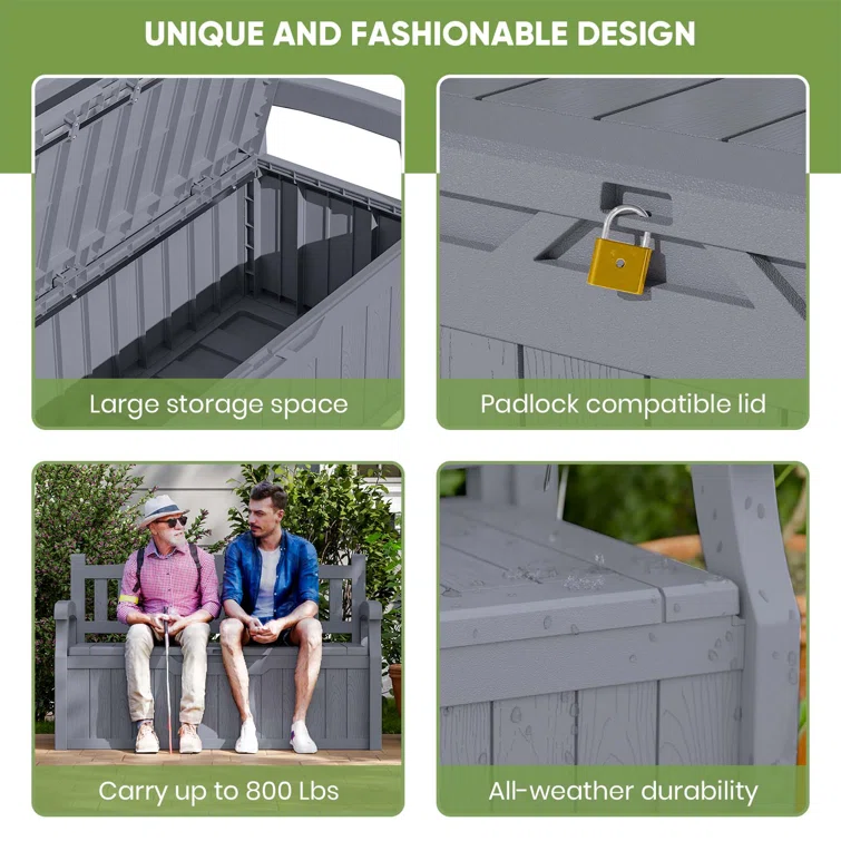 Modern Depo 100 Gallon Water Resistant Resin Deck Box with Cushion, Lockable