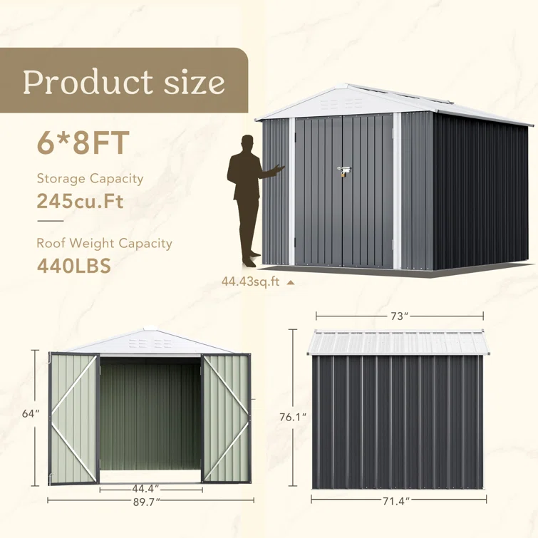 8 ft. W x 6 ft. D Metal Storage Shed