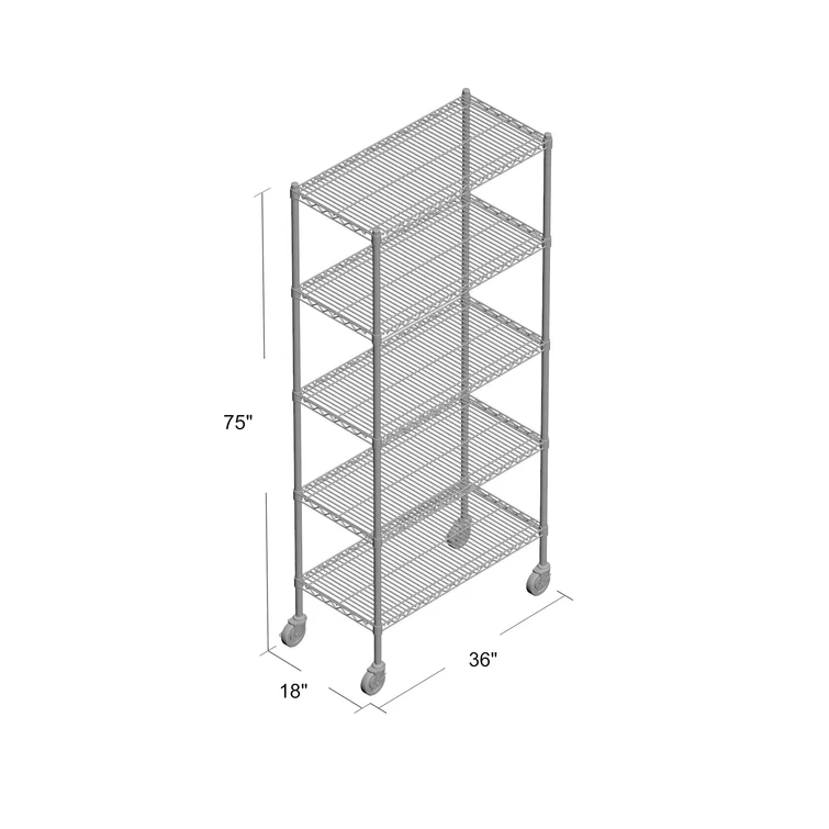 Mobile 36'' W Steel Shelving Unit with Wheels
