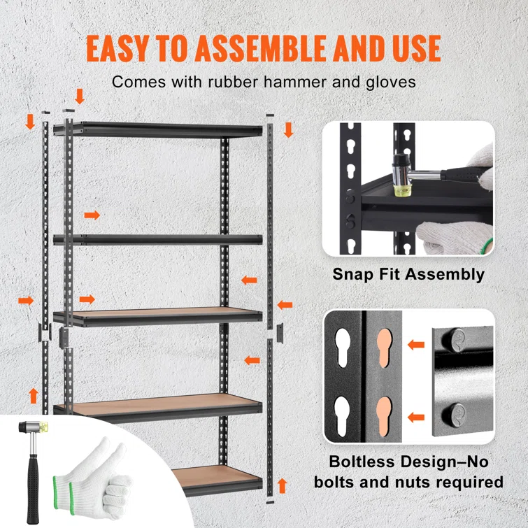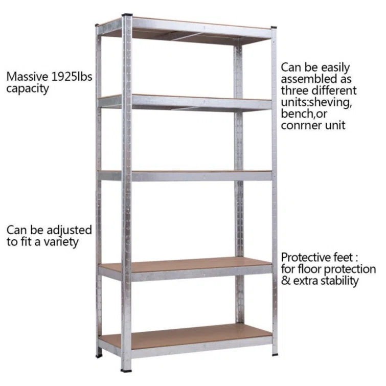 Trosper 71 inch.H Adjustable 5 Level Storage Shelves With Heavy Duty Steel Frame
