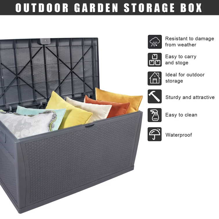 100 Gallons Wicker Outdoor Storage Deck Box