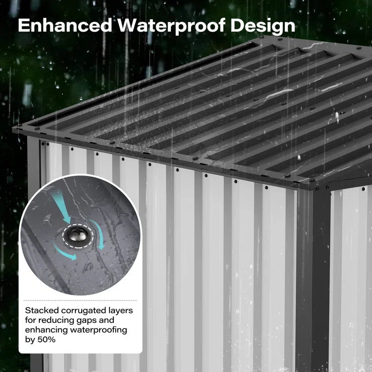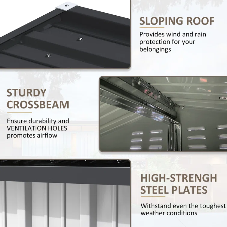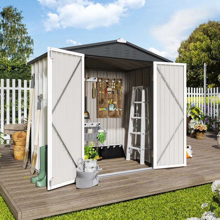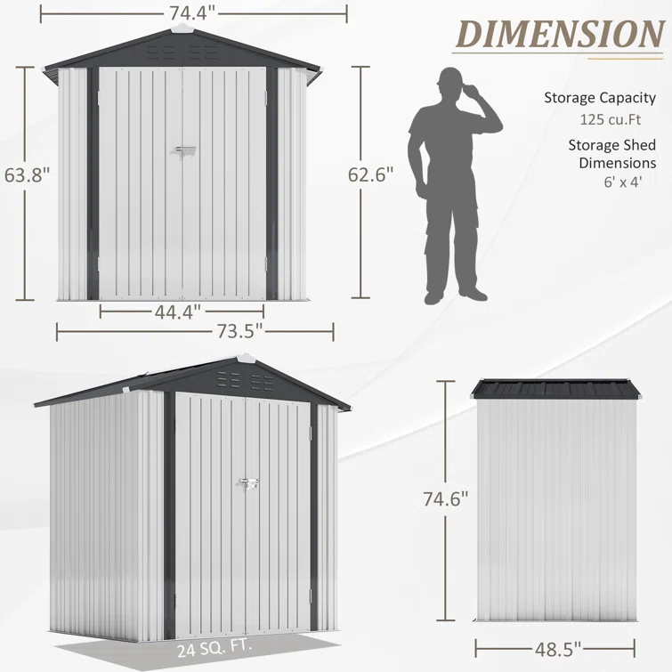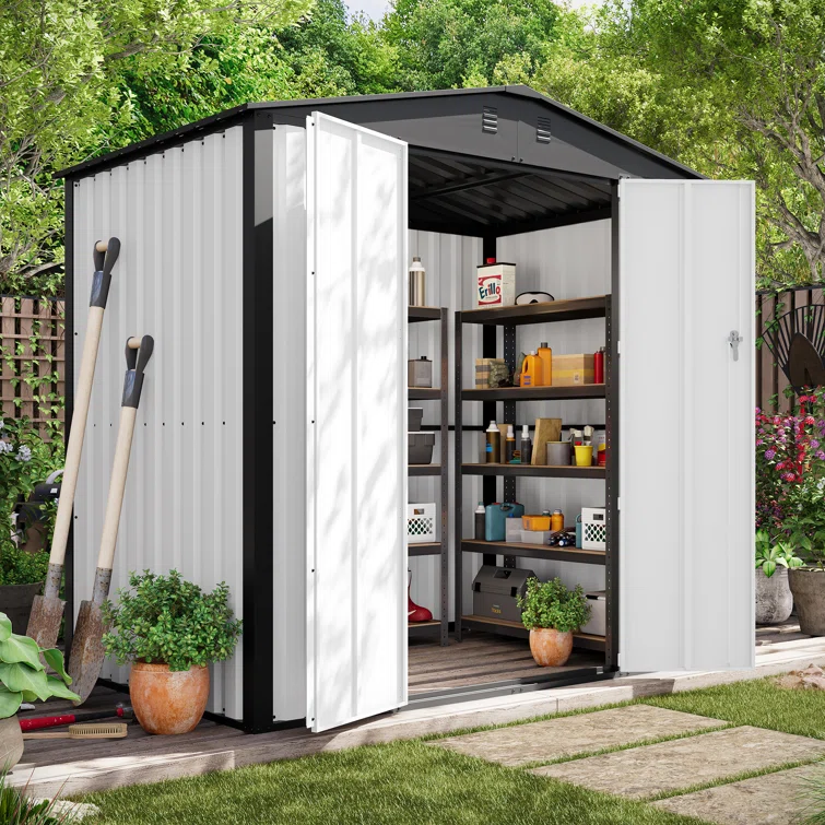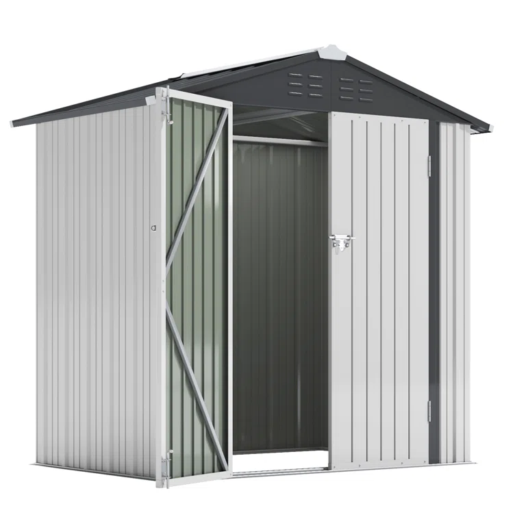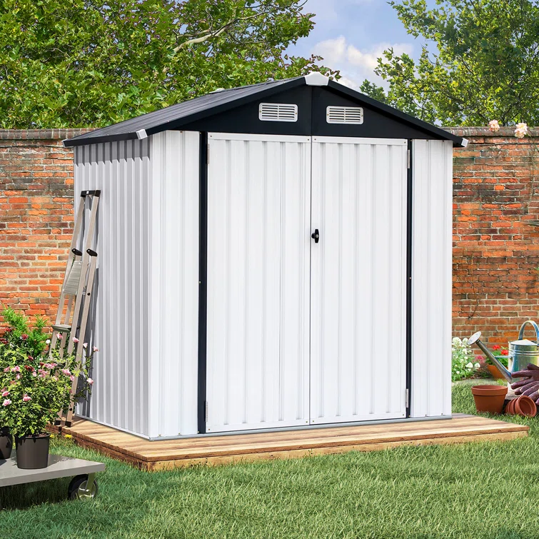 6 ft. W x 4 ft. D Metal Vertical Storage Shed, White&Black