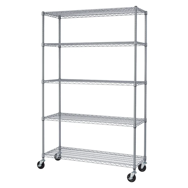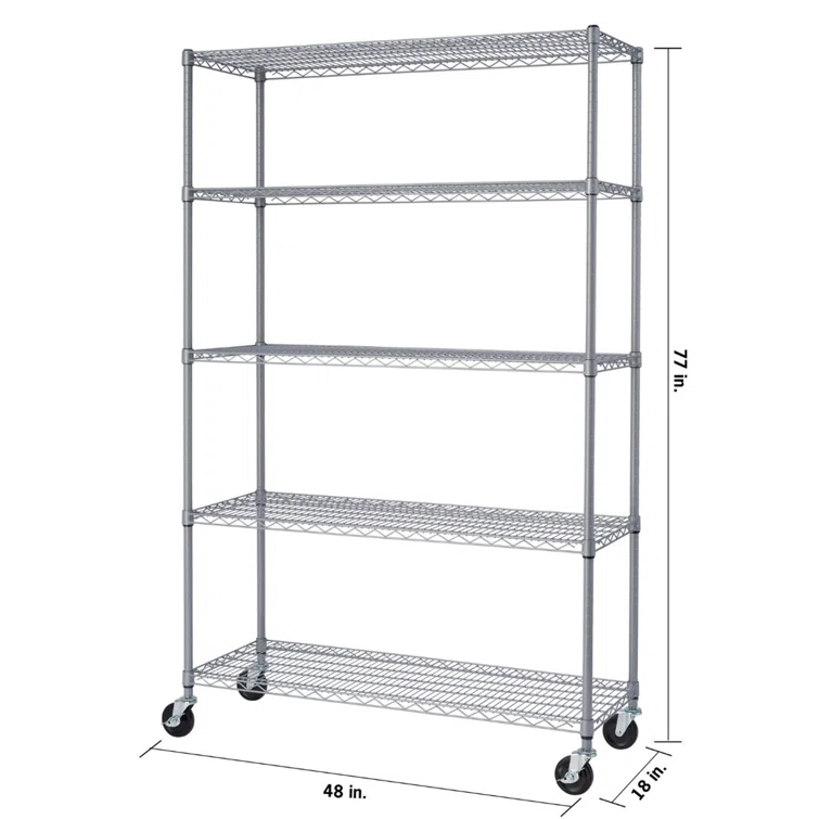 48" W x 18" D x 72" H 5 Tier Outdoor Wire Shelving with Wheels