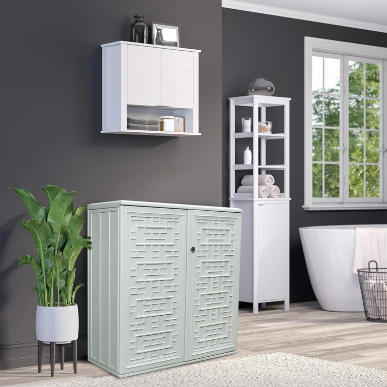 Outdoor 34.3"W x 36.2"H Plastic Vertical Storage Shed With One Shelf