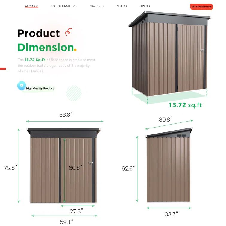 5 ft. W x 3 ft. D Metal Lean-To Storage Shed