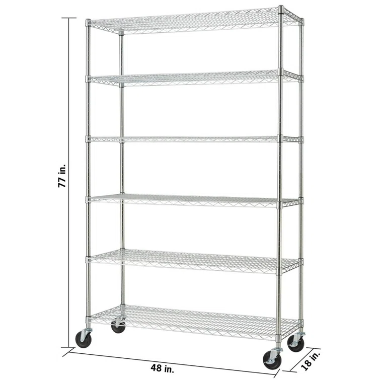 48" W x 18" D x 77" H 6 Tier Wire Shelving with Wheels