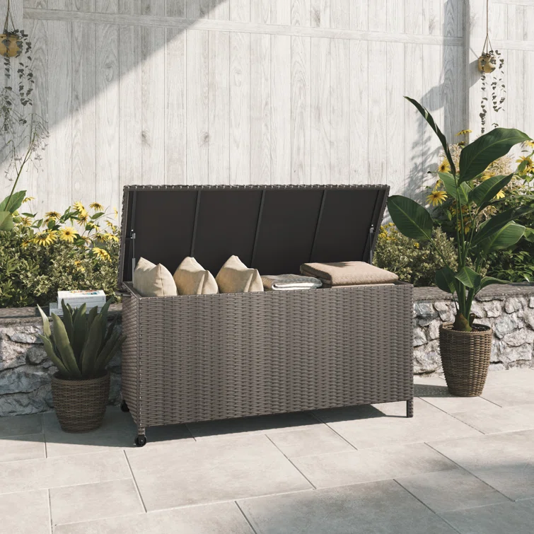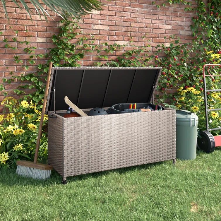 Grand Patio 53.53'' W 108 Gallons Water Resistant Wicker Deck Box with Wheels