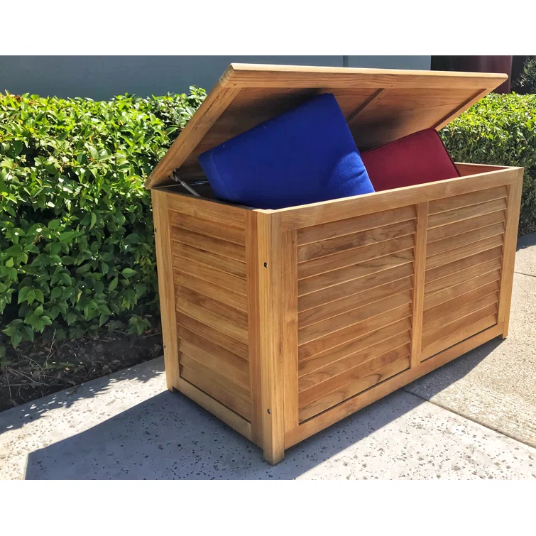 Rosecliff Heights Wickenburg 47.64'' W Water Resistant Solid Wood Teak Deck Box in Natural Blonde