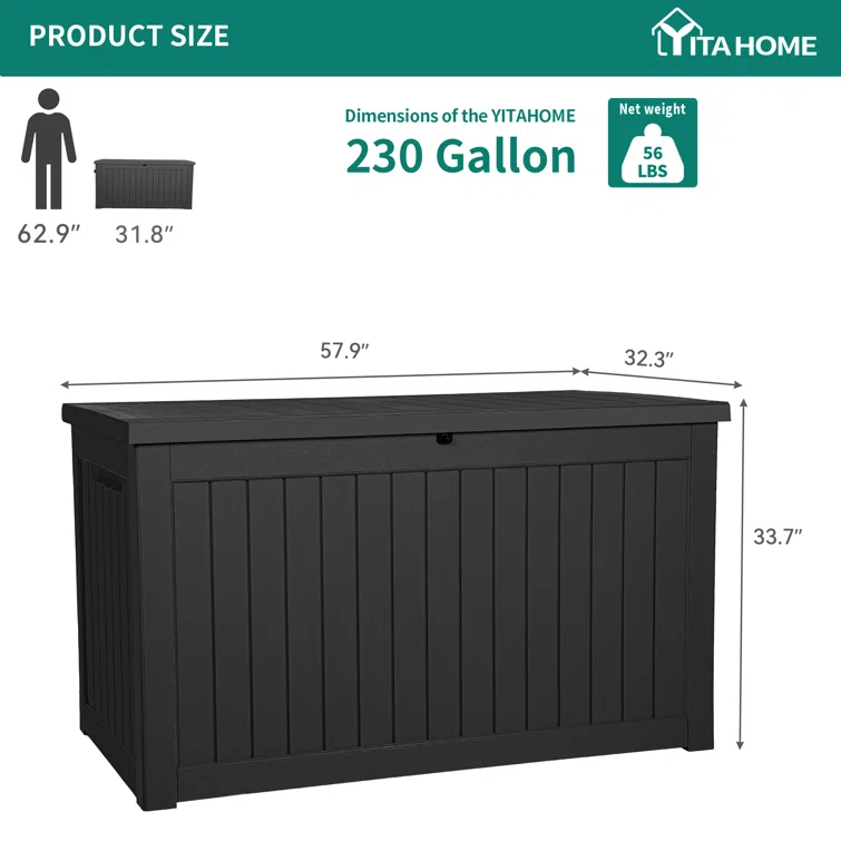 YITA 230 Gallons Water Resistant Resin Lockable Deck Box