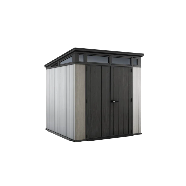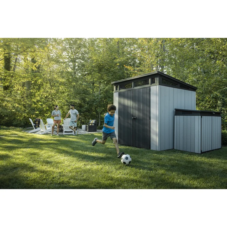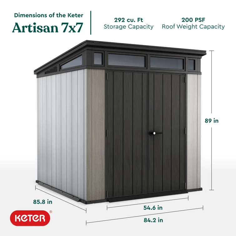 Keter Artisan 7x7 ft. Modern Durable Resin Outdoor Storage Shed With Floor and Double Doors for Garden Patio Furniture and Tools, Grey