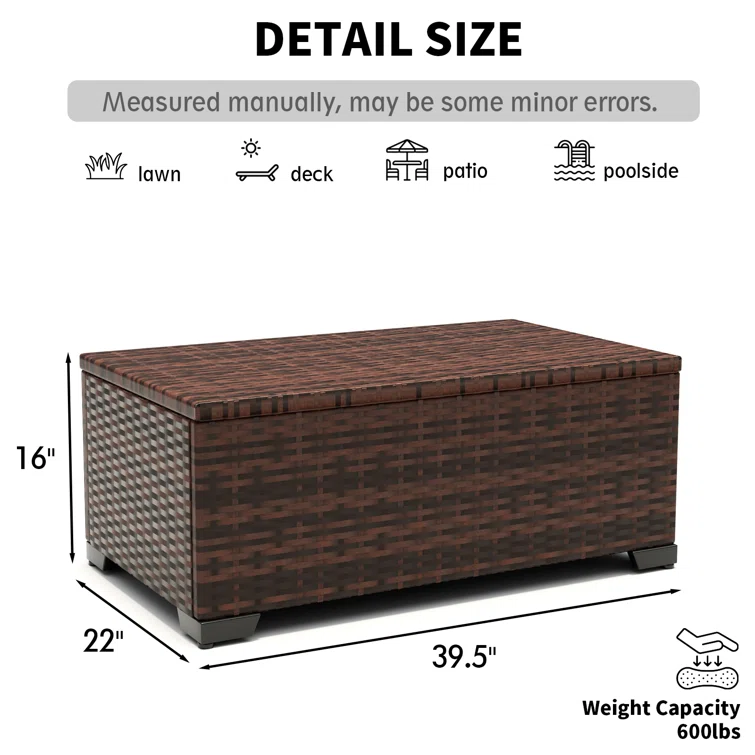 EFURDEN 47'' W 100 Gallons Water Resistant Wicker Deck Box