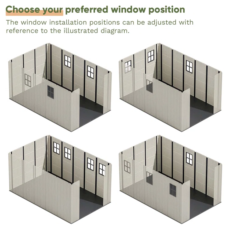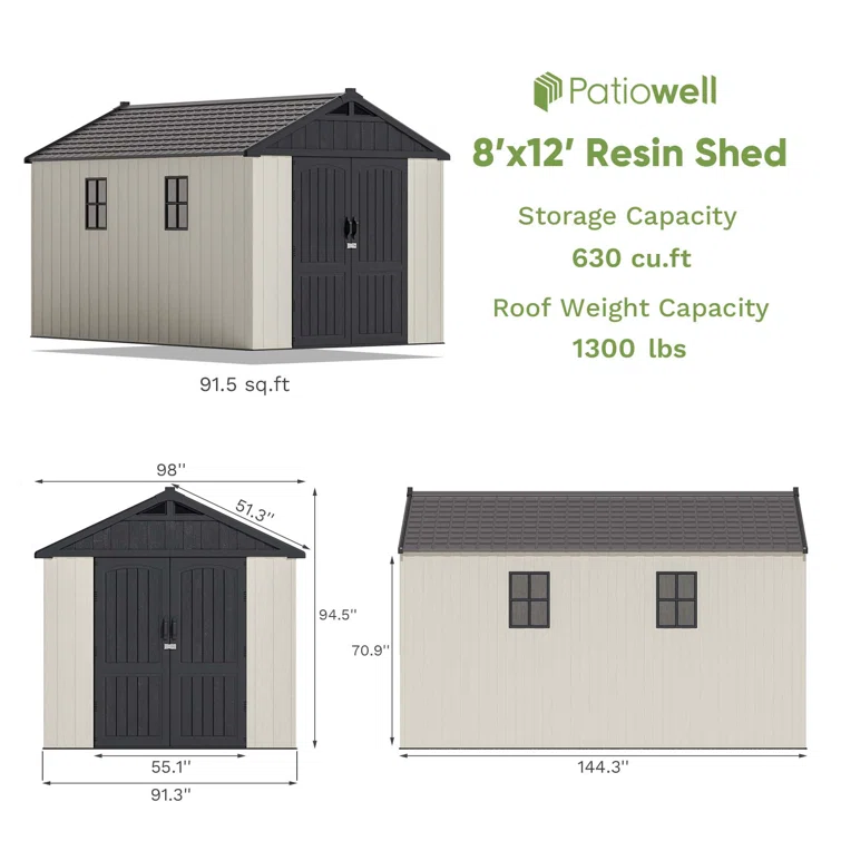 8 Ft. W X 12 Ft. D Plastic Storage Shed With Floor, Resin Shed With Reinforced Steel Structure, Beige