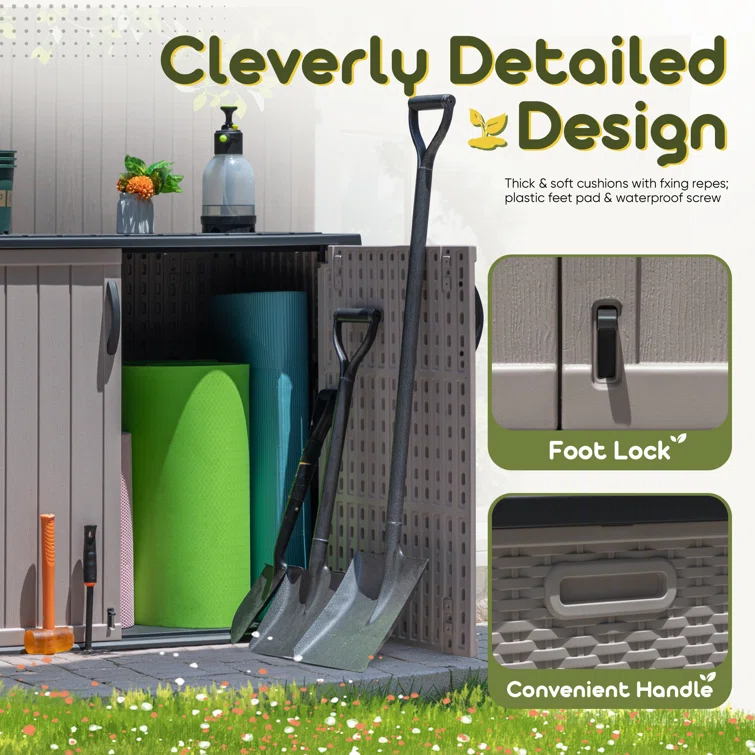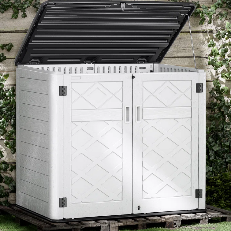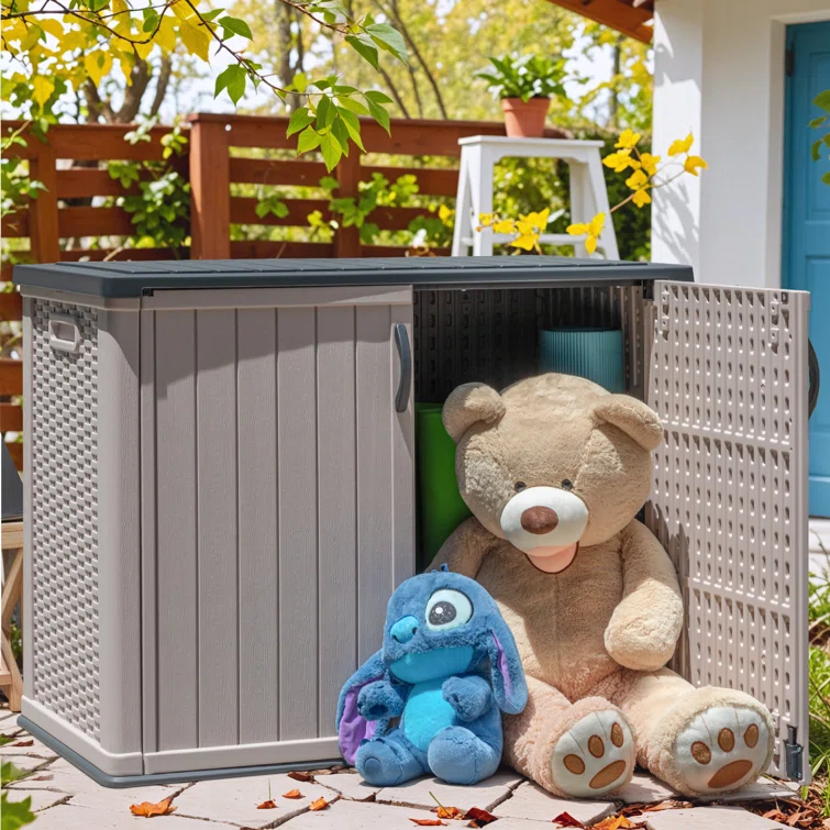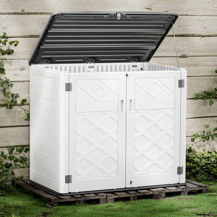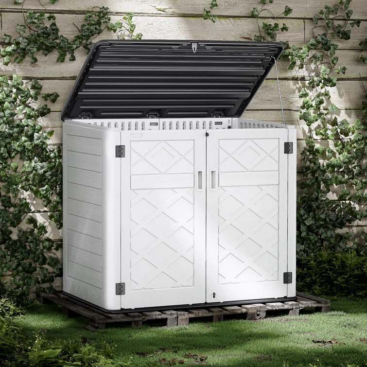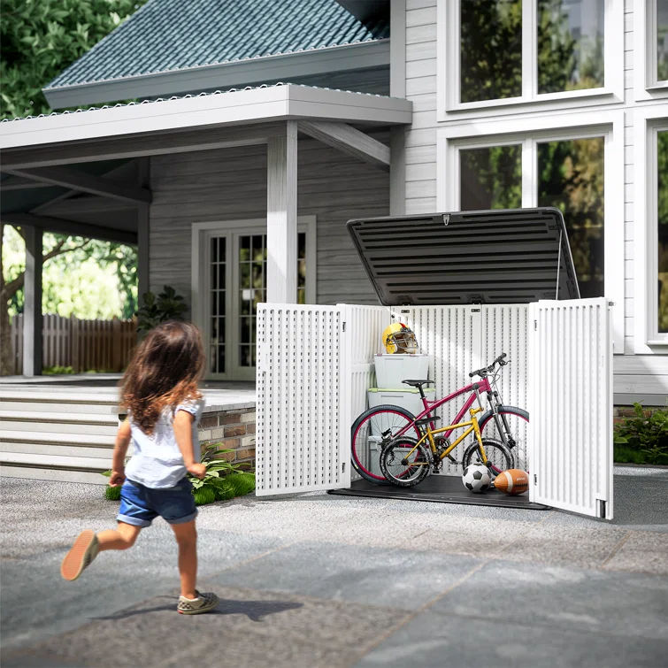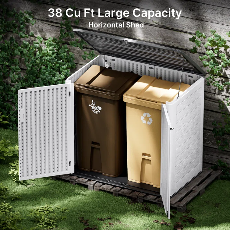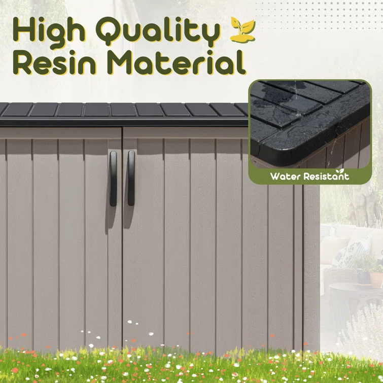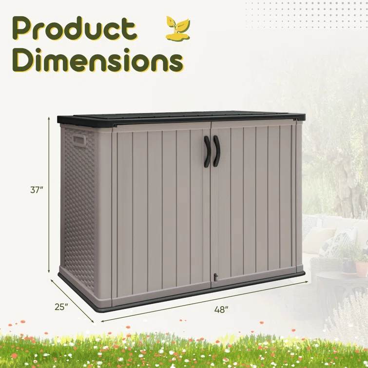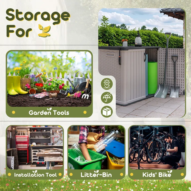 Outdoor Storage Shed, Horizontal Storage Box, Lockable Resin Waterproof Shed, Easy To Store Tools, Kids’bike, Litter Bin