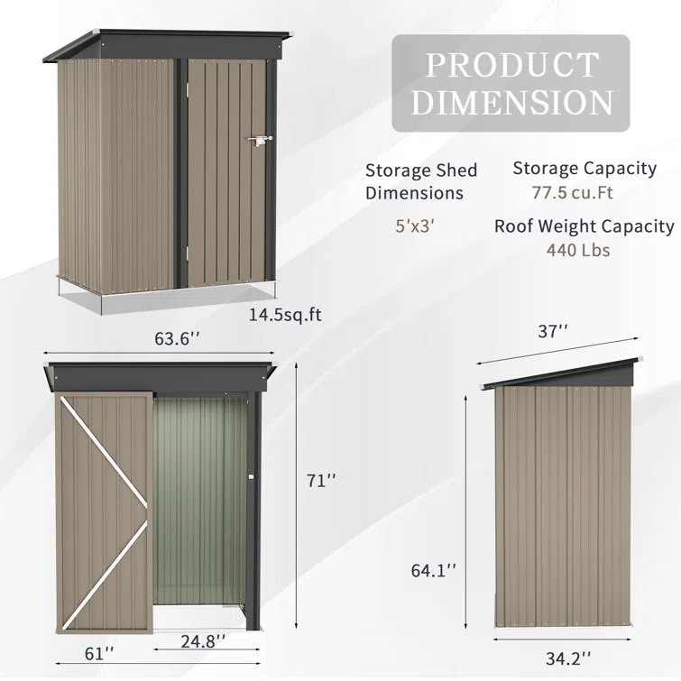 Outdoor 5 ft. W x 3 ft. D Material Storage Shed