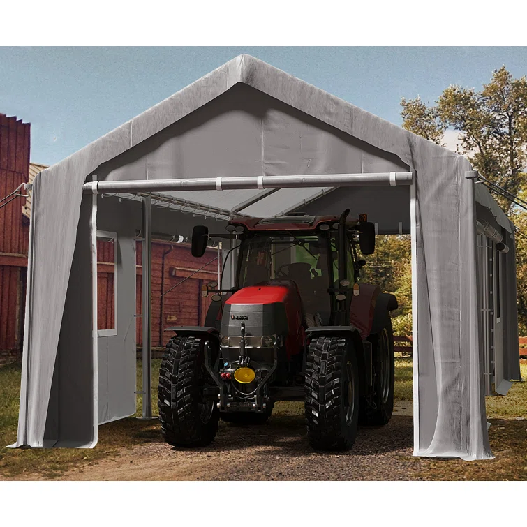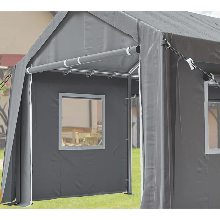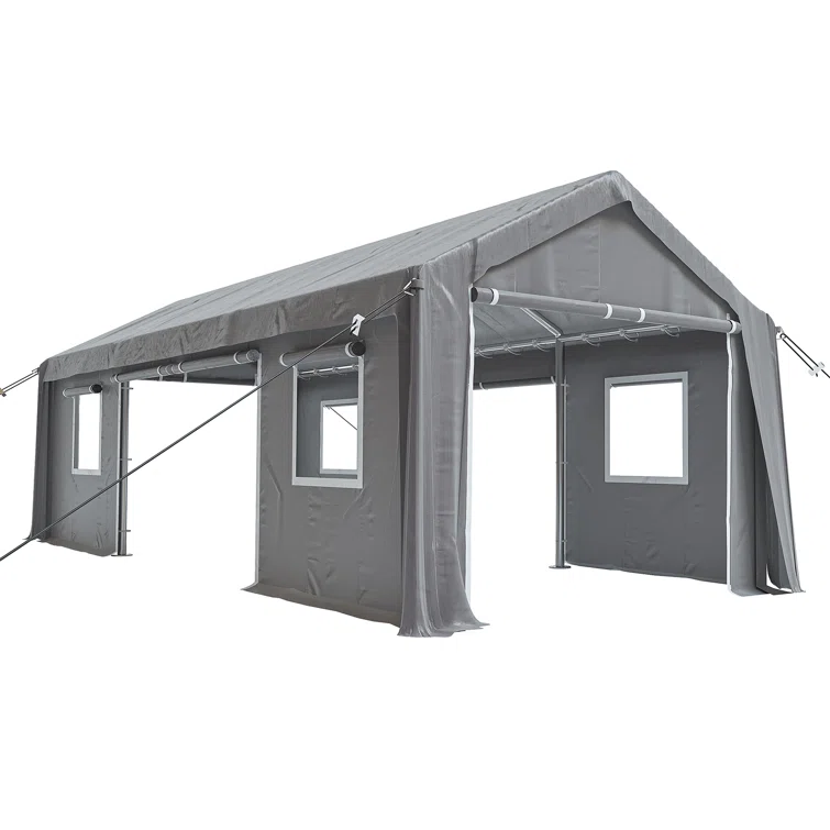 Heavy duty parking shed with 4 doors and 4 windows