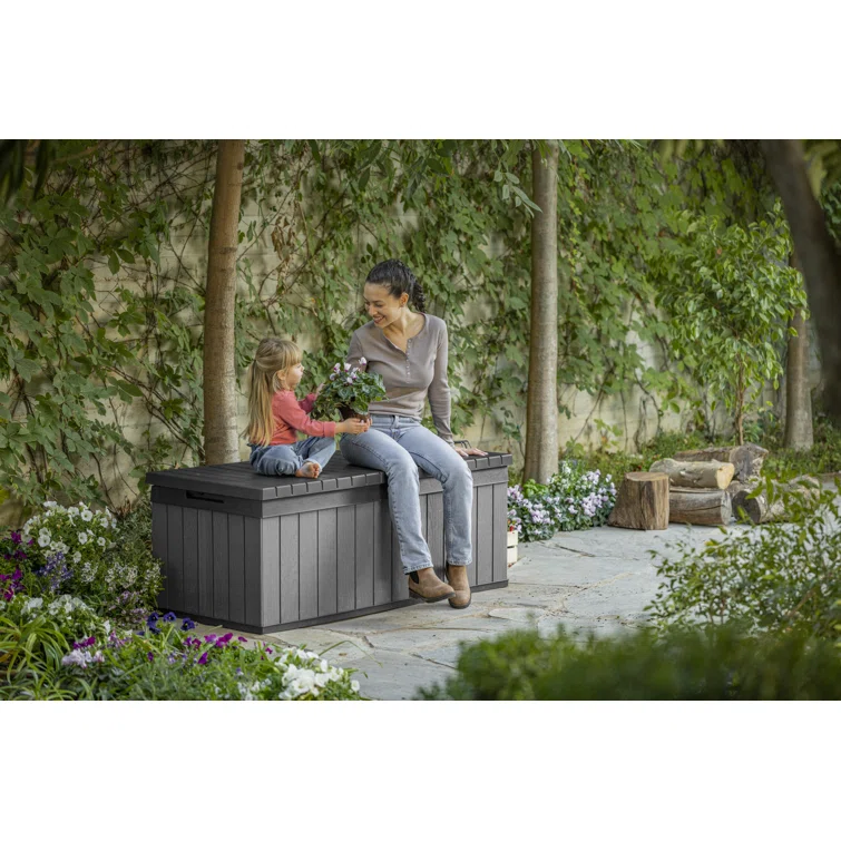Keter Darwin 100 Gallon Durable Resin Outdoor Storage and Organization Deck Box Ideal For Garden Patio Furniture and Supplies, Graphite