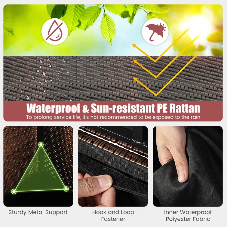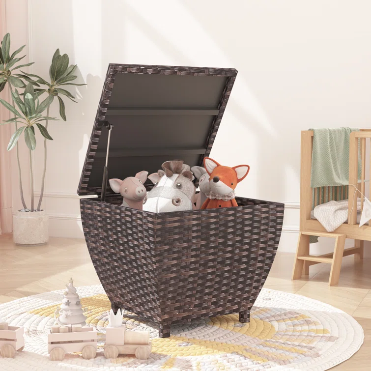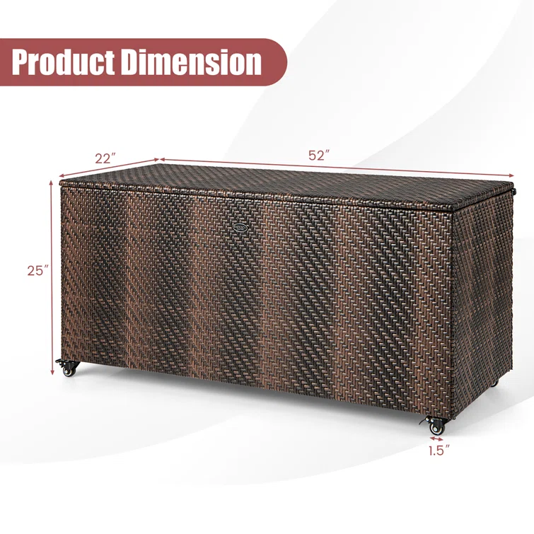 Gymax 52'' W 96 Gallons Water Resistant Wicker Deck Box with Wheels