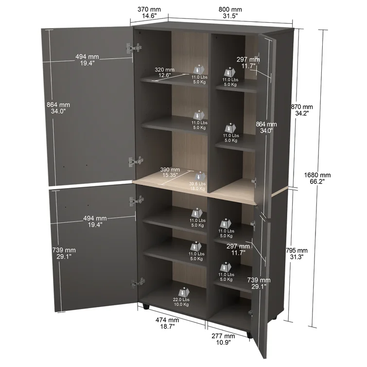 Jezelle Single Storage Cabinet ( 66.1'' H x 31.5'' W x 14.6'' D)