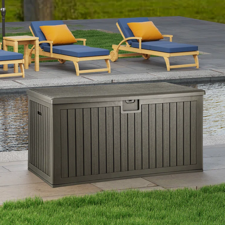 GUNJI 48'' W 100 Gallons Water Resistant Resin Lockable Deck Box