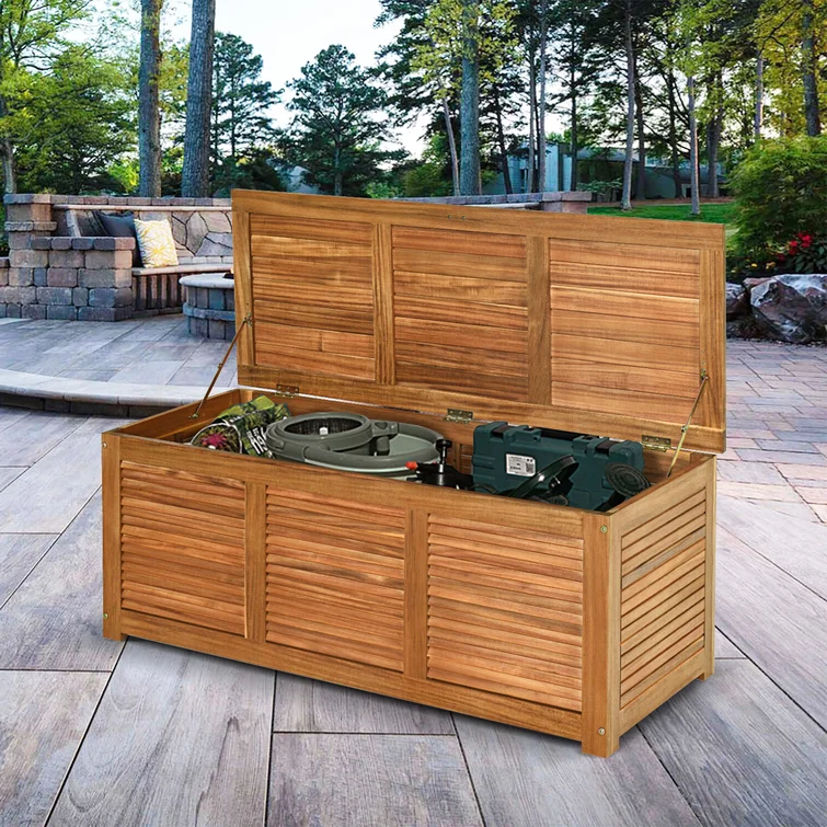 Furinno Tioman 44.5'' W 47.33 Gallons Water Resistant Solid Wood Teak Deck Box in Natural