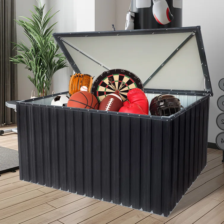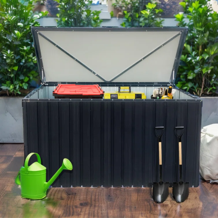 IYofe Water Resistant Metal Lockable Deck Box in Black