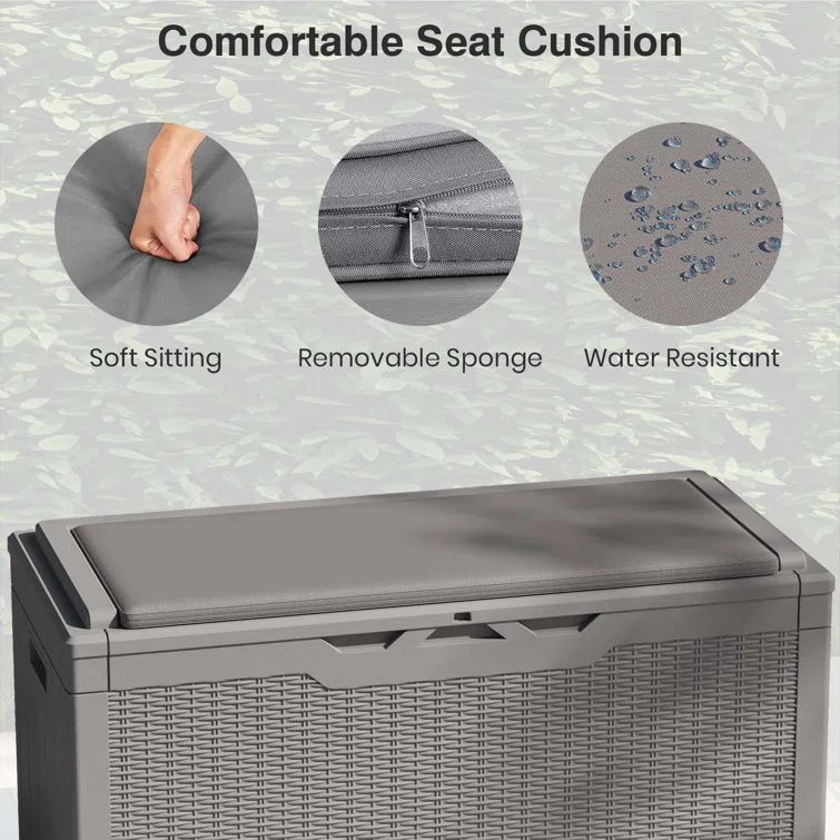 100 Gallons Water Resistant Resin Lockable Deck Box with Cushion