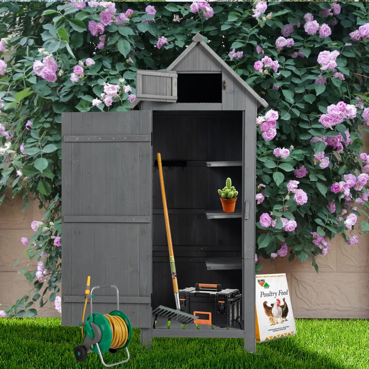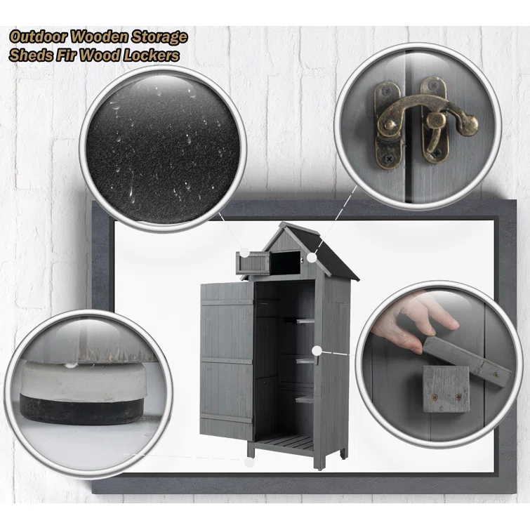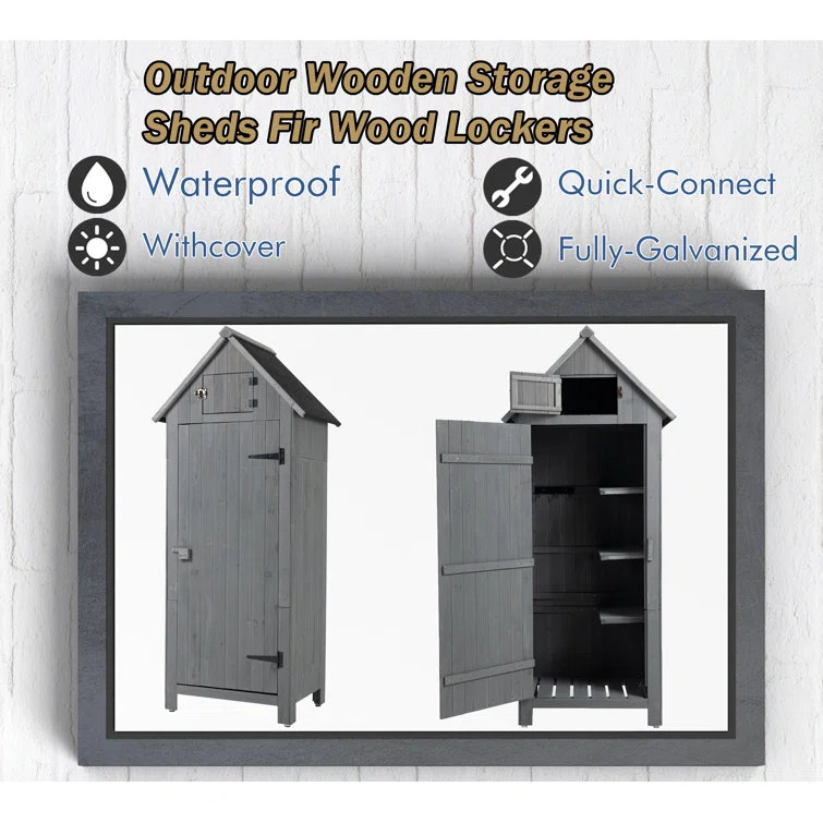Outdoor 2 ft. x 1.5 ft Solid Wood Vertical Tool Shed