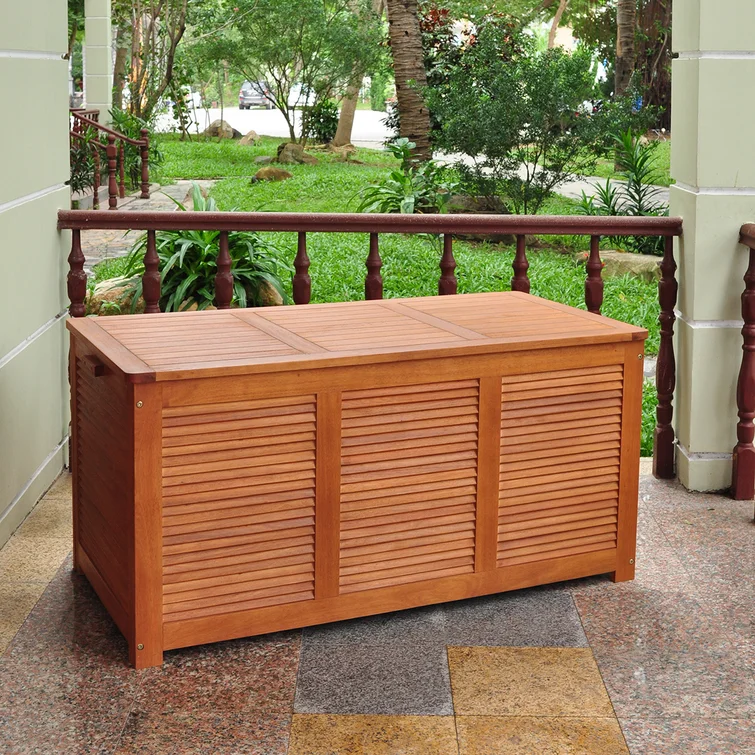 Red Barrel Studio® 48.62'' W 117 Gallons Water Resistant Solid Wood Eucalyptus Deck Box in Golden Oak