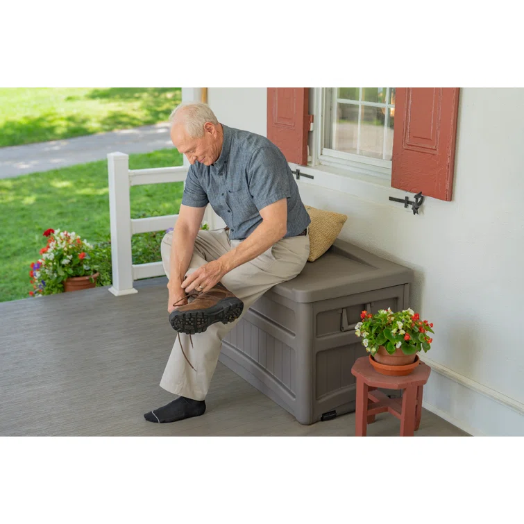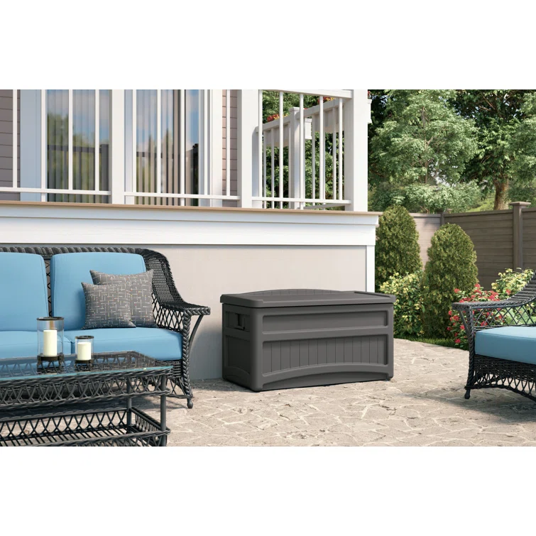 Suncast 73 Gallon Water Resistant Deck Box in Stoney