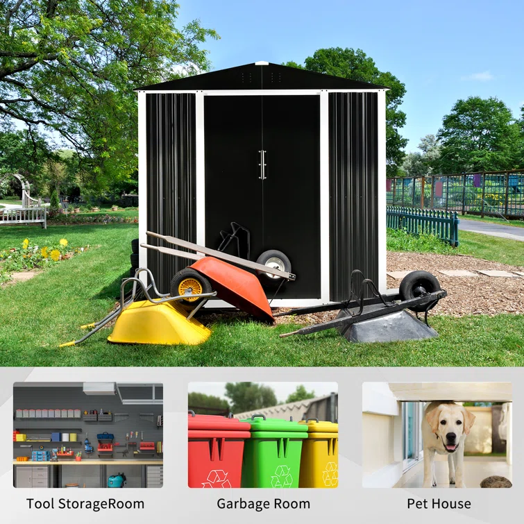 4' X 8' Shed Outdoor Storage Shed With Triple Lockable Door