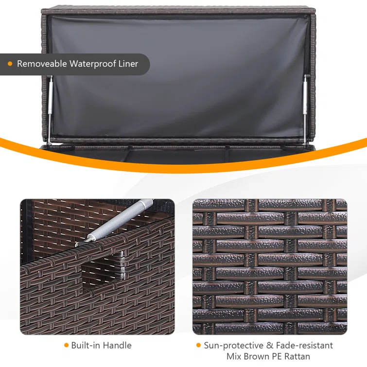 Gymax 40'' W 50 Gallons Water Resistant Wicker Deck Box with Wheels in Mix Brown
