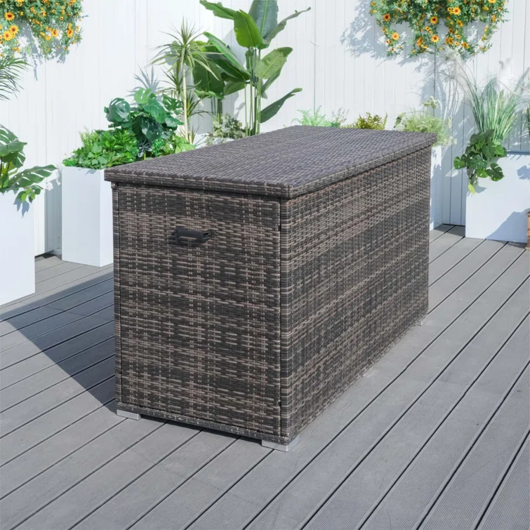 Moda Furnishings 50.26'' W 264 Gallons Water Resistant Wicker Deck Box in Brown