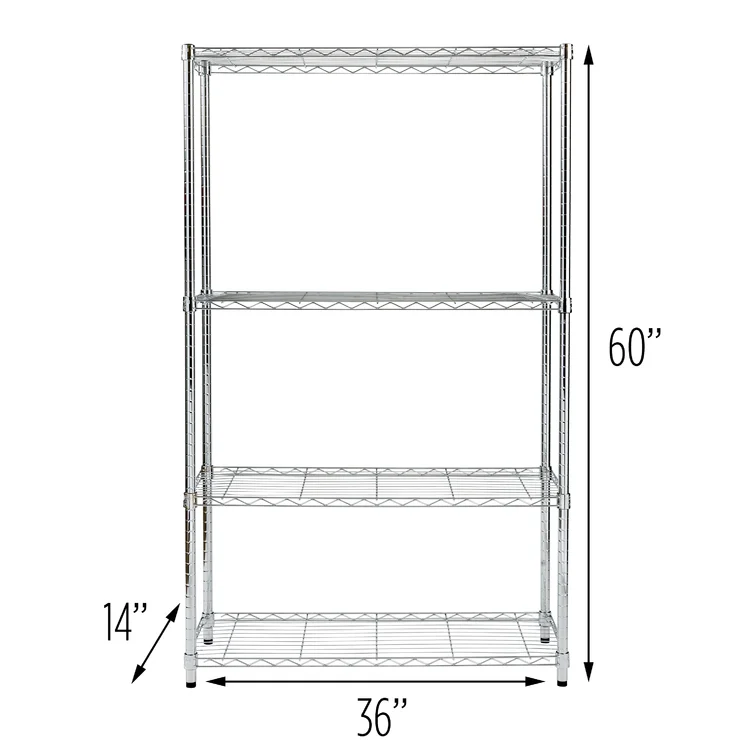 4-Tier Steel Height-Adjustable Shelving Unit (60" H x 36" W x 14" D)