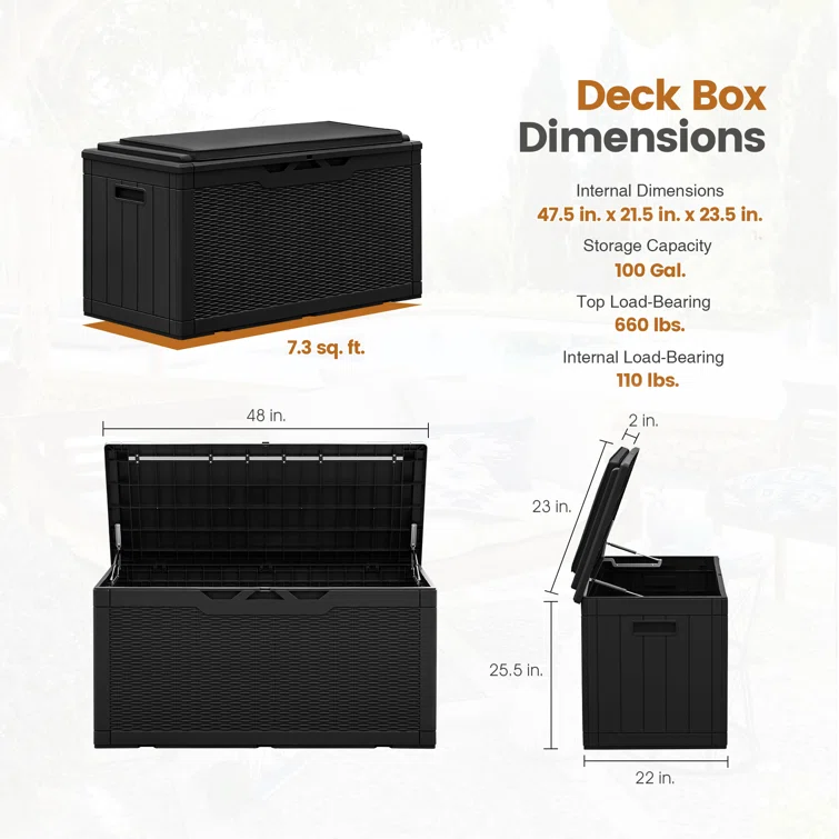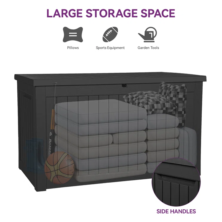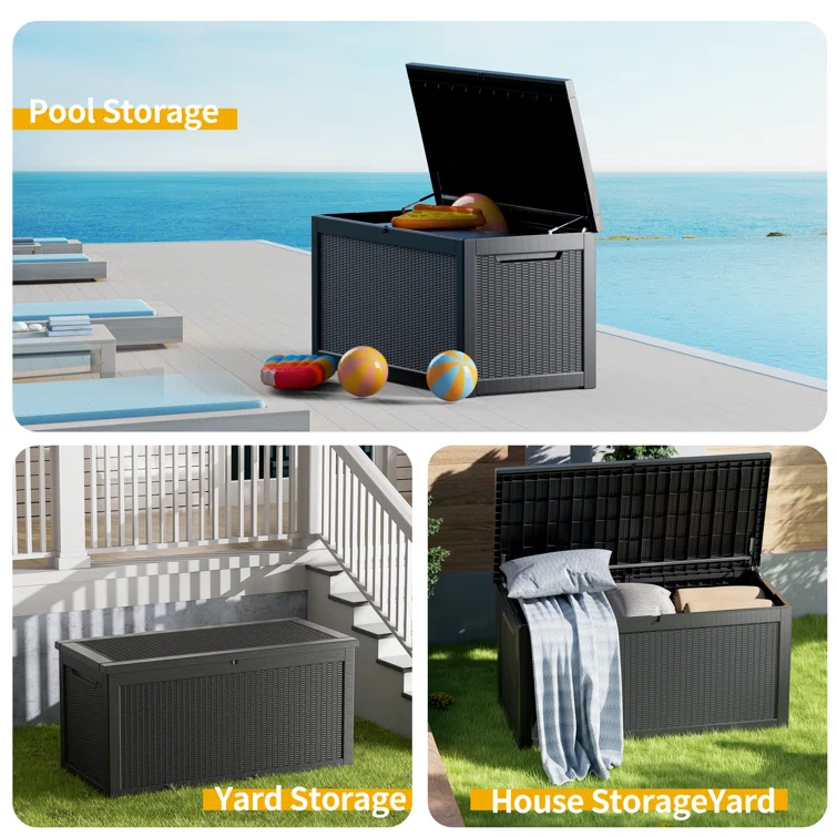 Furmax 100 Gallons Plastic Lockable Deck Box With Cushion