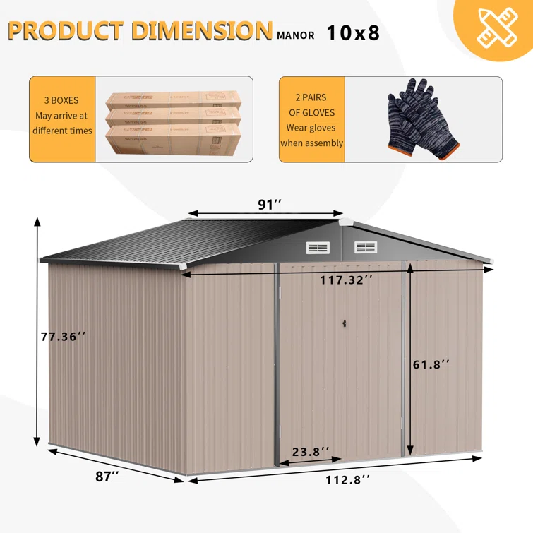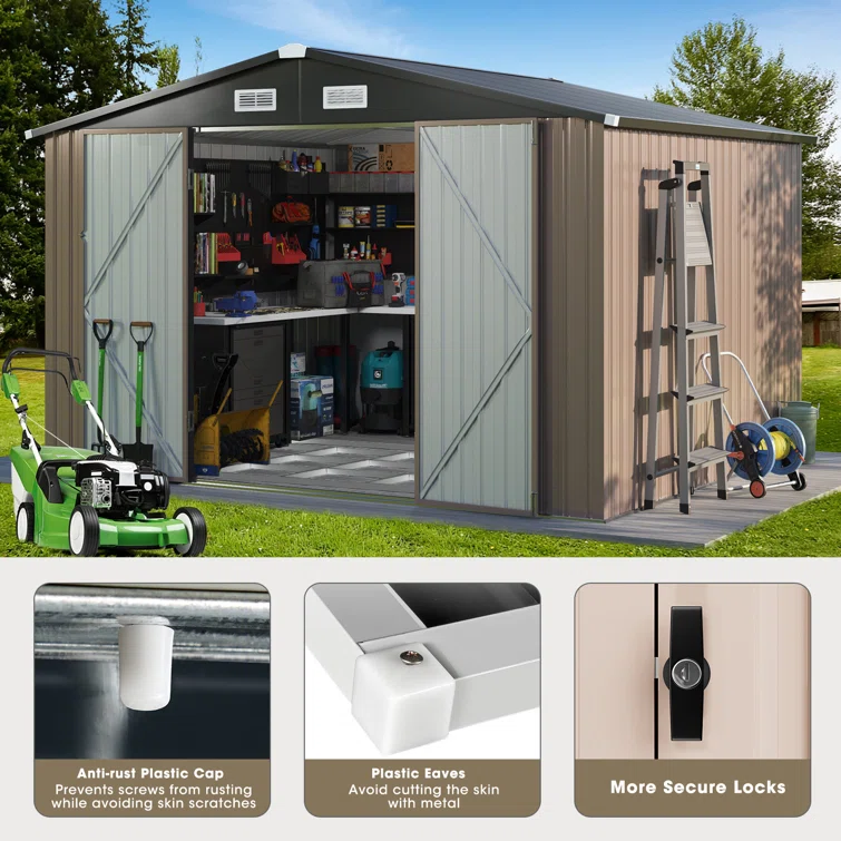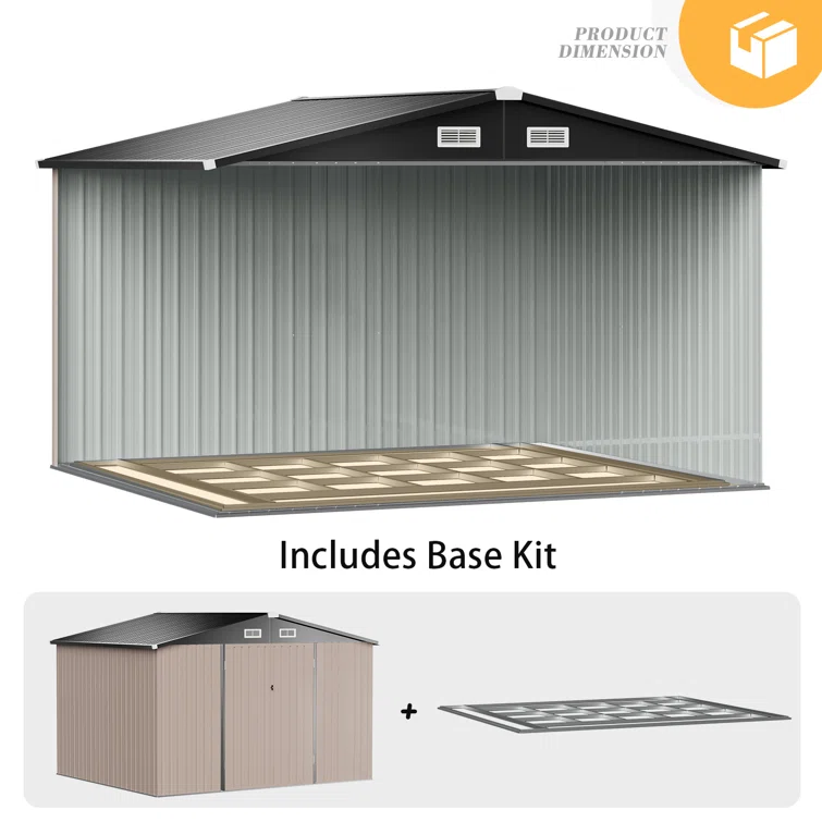 10 ft. W x 8 ft. D Metal Storage Shed with Metal Base Frame Kit