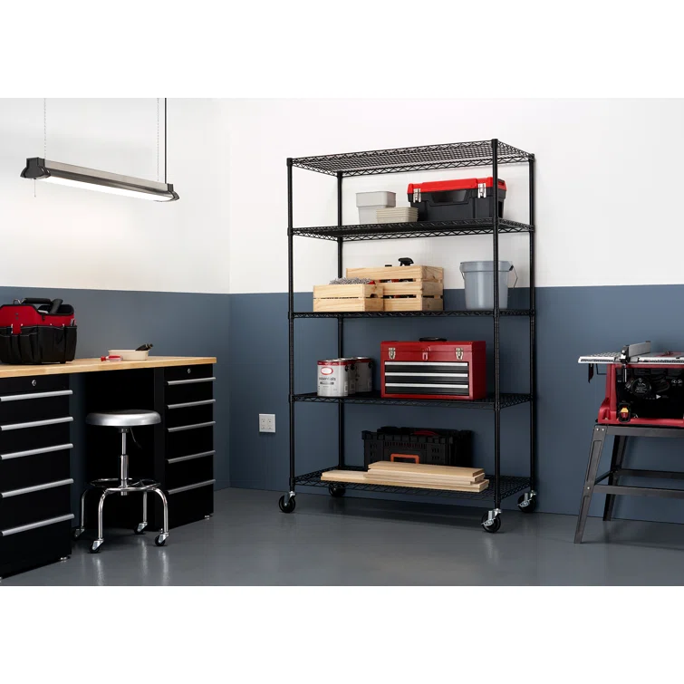 48" W x 24" D x 72" H 5 Tier Wire Shelving with Wheels