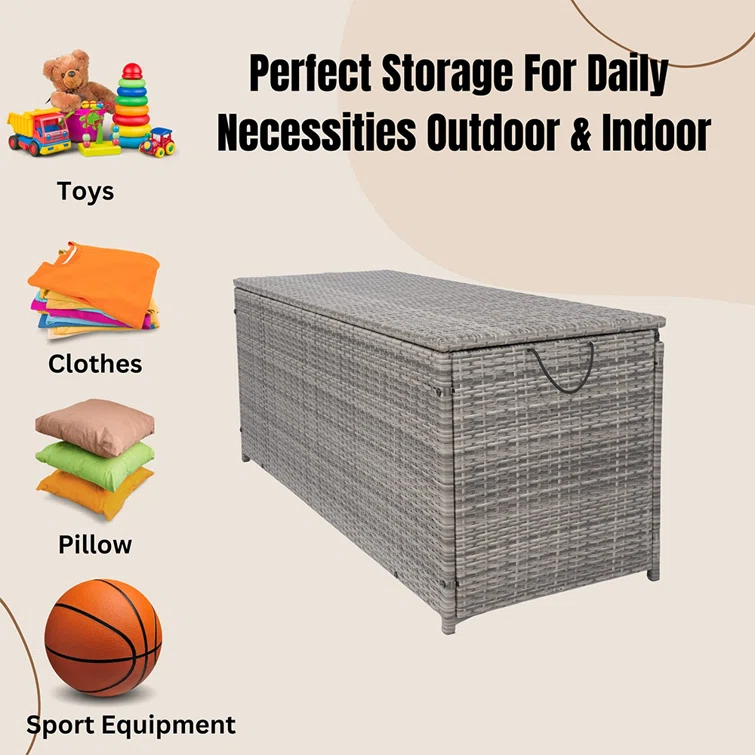 IYofe 53'' W 113 Gallons Water Resistant Wicker Deck Box