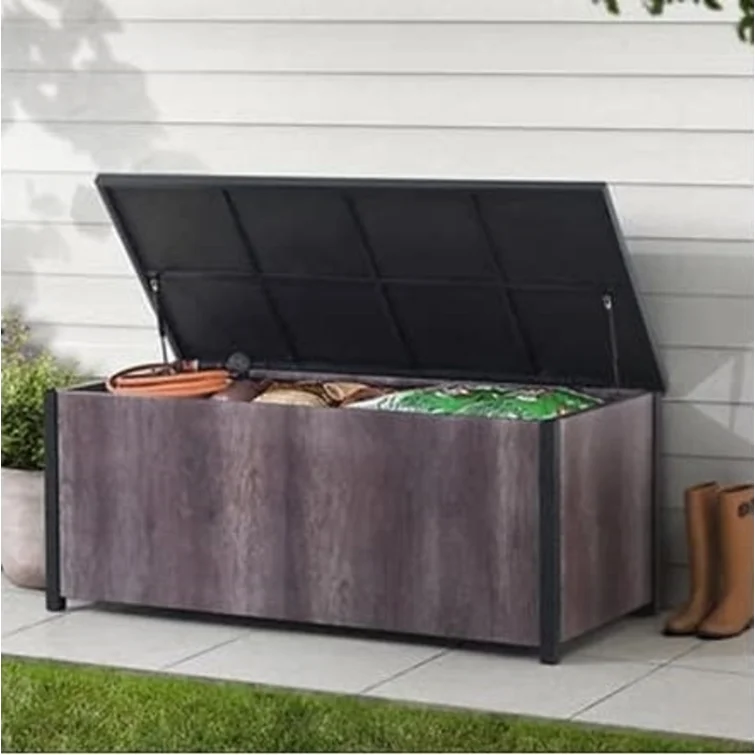 Furmax resin/solid wood and artificial wood outdoor storage benches