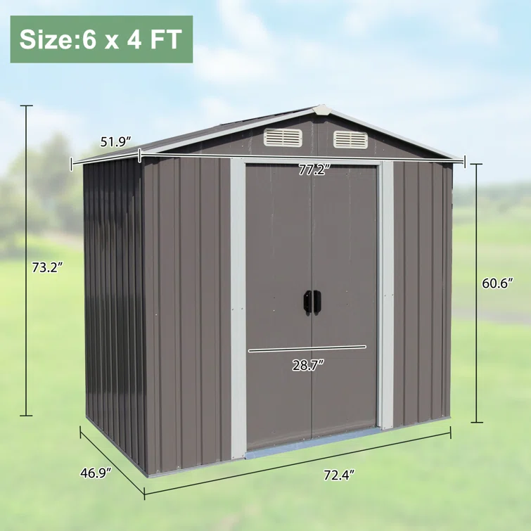 4 ft. W x 6 ft. D Metal Tool Shed (Set of 3)