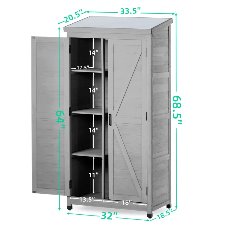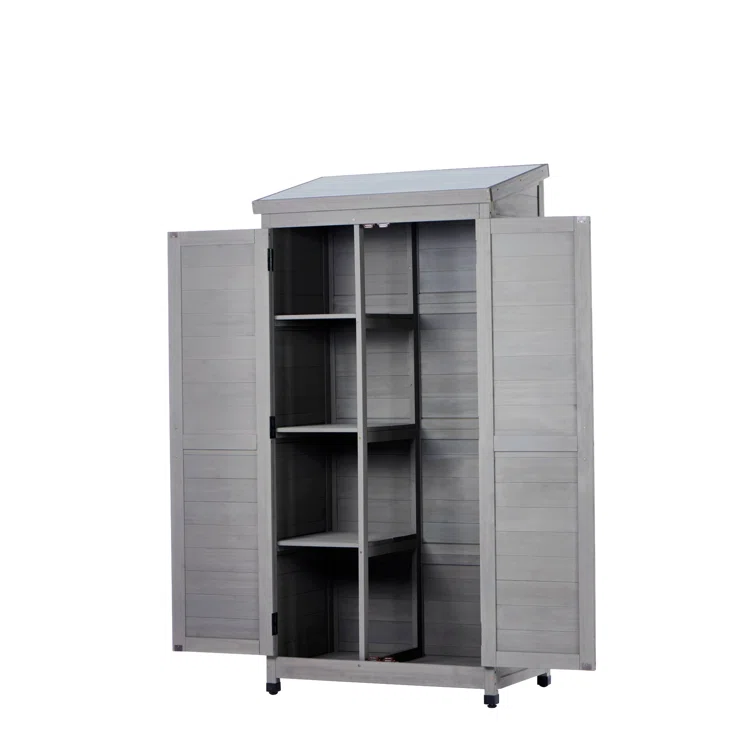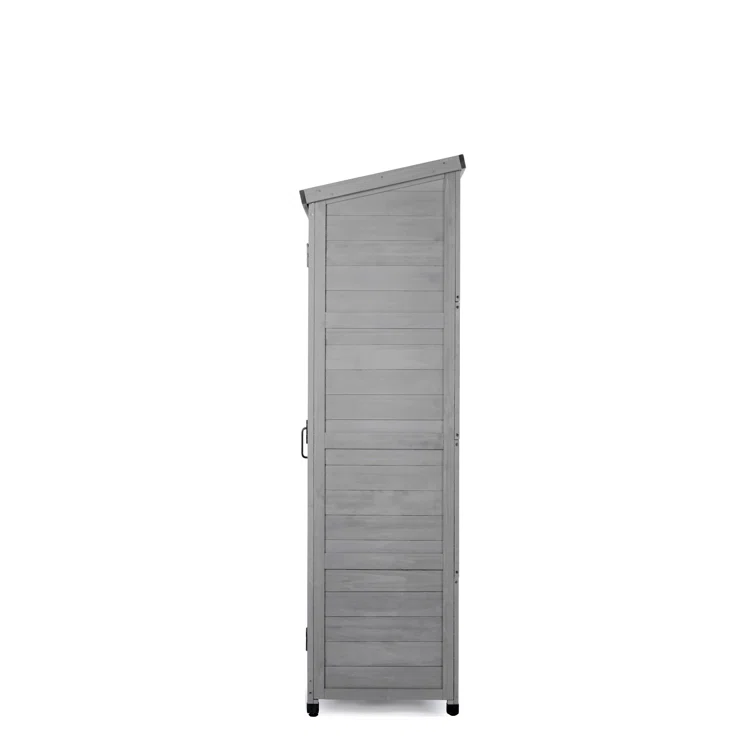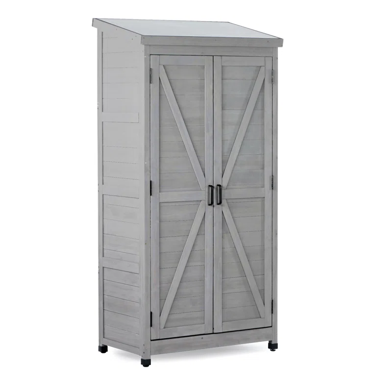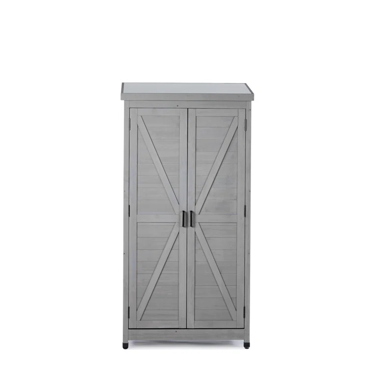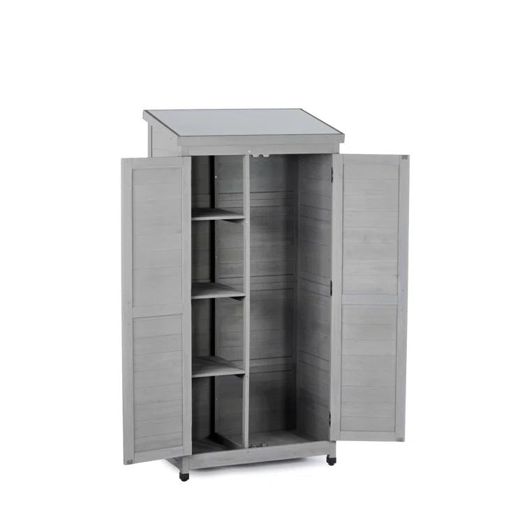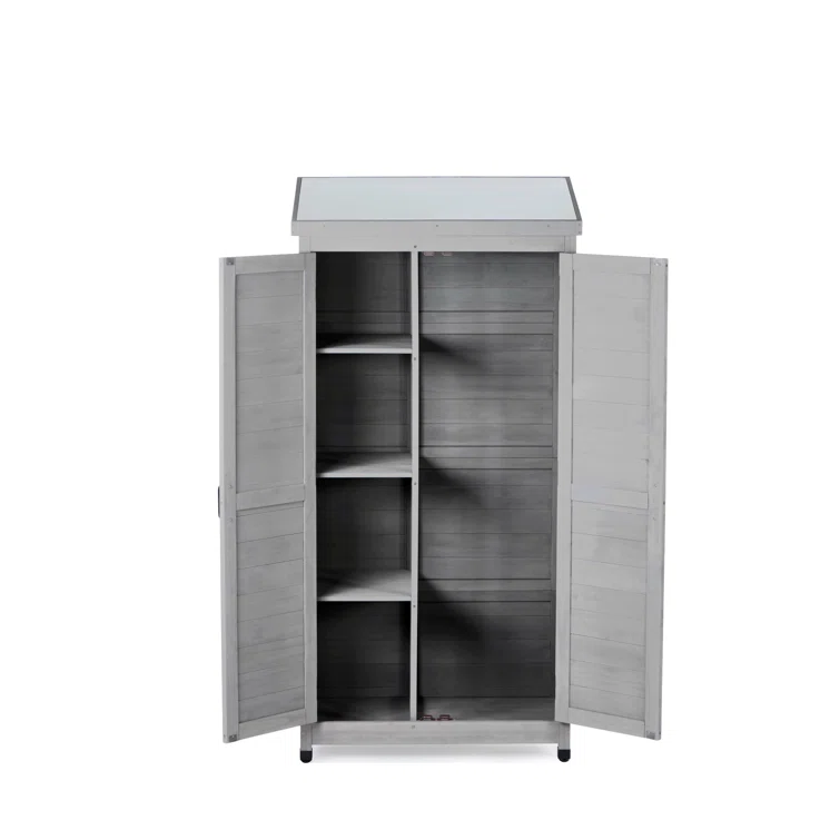 Garden Storage Cabinet, Outdoor Tool Shed with Galvanized Top and Two Shelves for Yard Tools or Pool Accessories, Grey