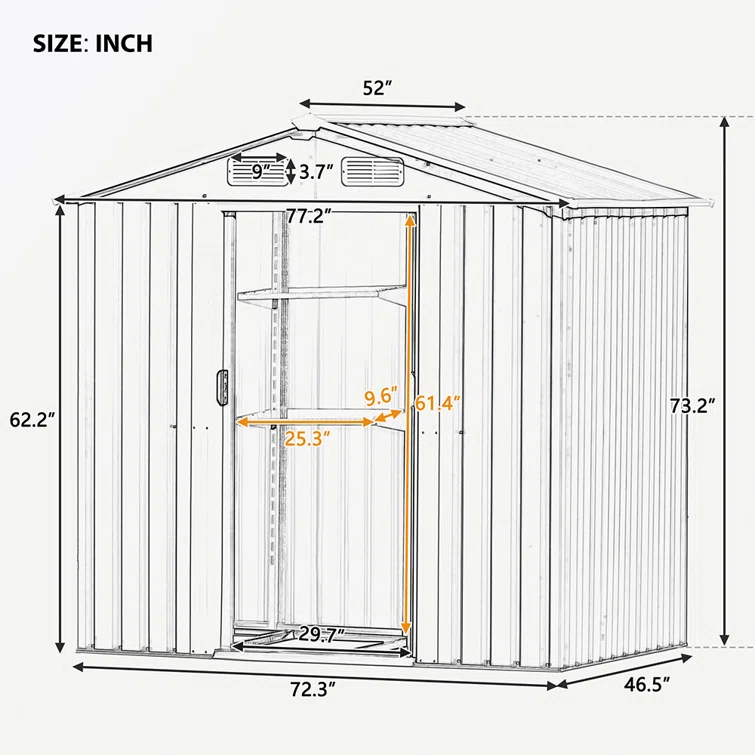 8 Ft X 6 Ft Outdoor Metal Storage Shed