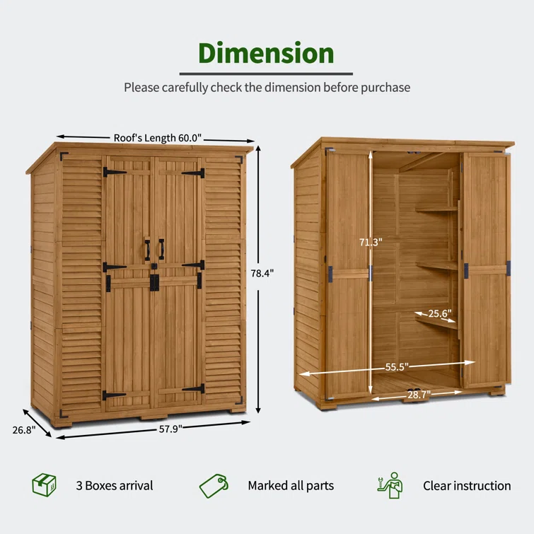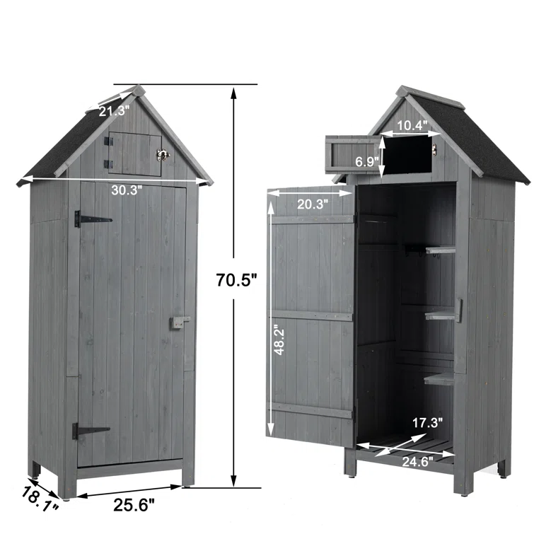 5 ft. W x 2 ft. D Outdoor Storage Shed with Double Lockable Doors and Waterproof Asphalt Roof